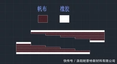 3、图中的白色部分为XK橡胶修补剂,红色网格状的为帆布,看下面图例:
